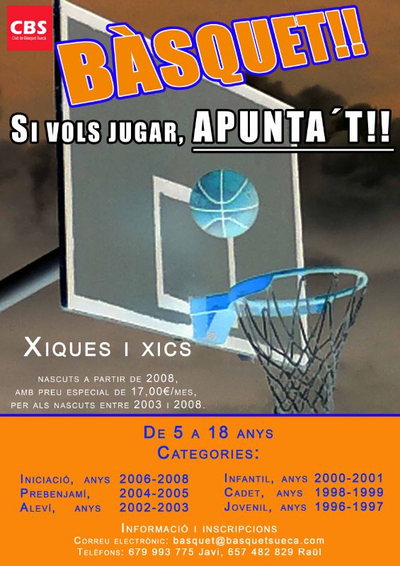 » APUNTA'T A L'ESCOLA DEL CLUB BÀSQUET SUECA
