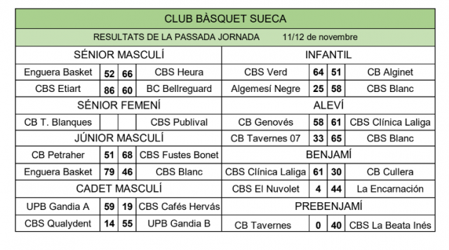 Resultats Jornada 11 i 12 de Novembre