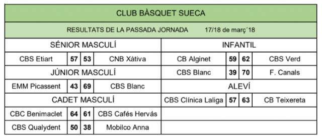 » Resultats de la Jornada 17 i 18 de març de 2018