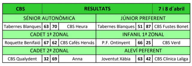 Resultats Jornada 7 i 8 d'Abril de 2018
