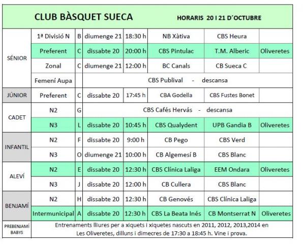 Notícies del Club Bàsquet Sueca 13 i 14 Octubre de 2018