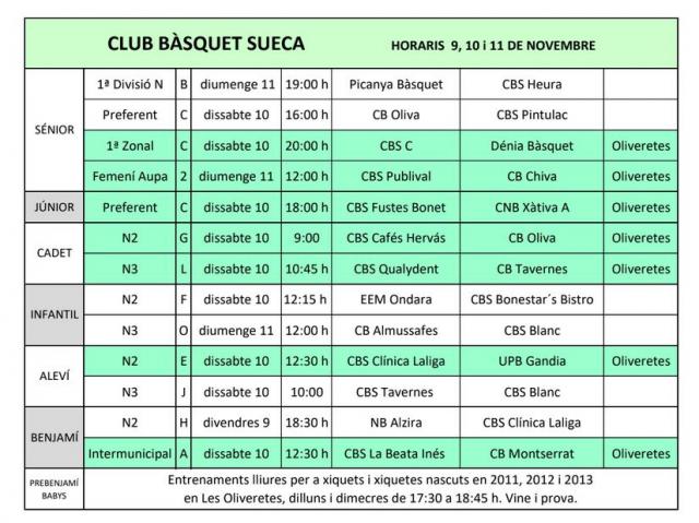 Notícies del Club 4 de Novembre de 2018. Resultats i Horaris