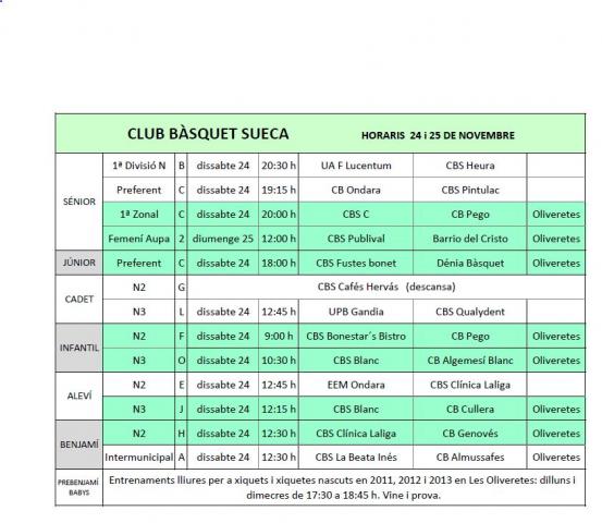 Notícies del club 18 de Novembre; Resultats i Pròxims Horaris