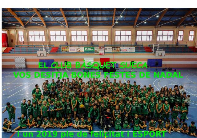 EL CLUB BÀSQUET SUECA DESITJA A TOTA LA COMUNITAT ESPORTIVA DE SUECA UNES BONES FESTES DE NADAL I UN 2019 PLE DE FELICITAT I ESPORT.