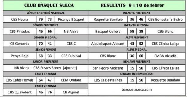 Notícies del club 9 i 10 de Febrer 2019; Resultats. Calendari Pròxima Jornada