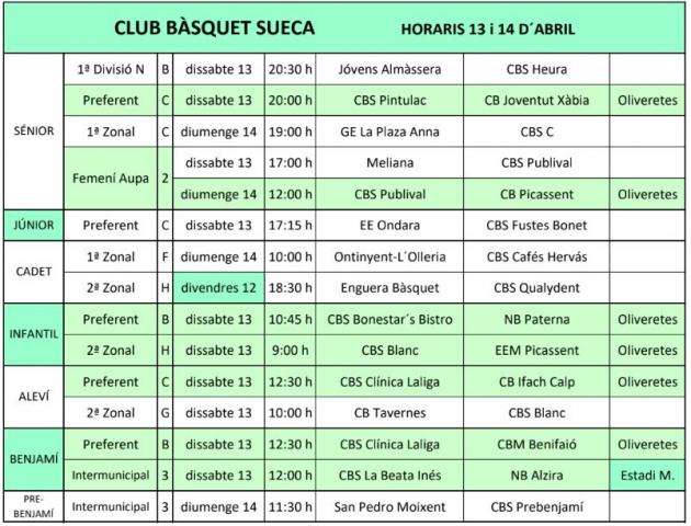 Notícies Del Club 6 I 7 D'Abril 2019. Resultats I Horaris