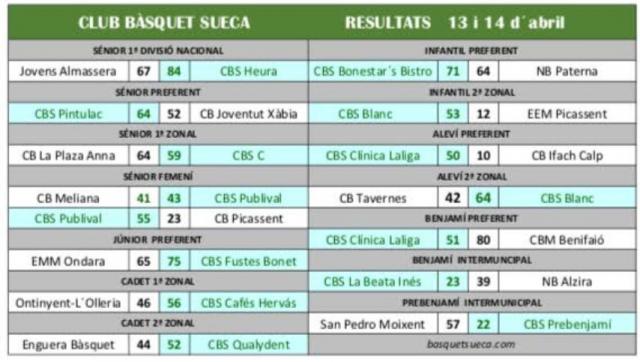 Notícies Del Club 13 I 14 D'Abril 2019. Resultats